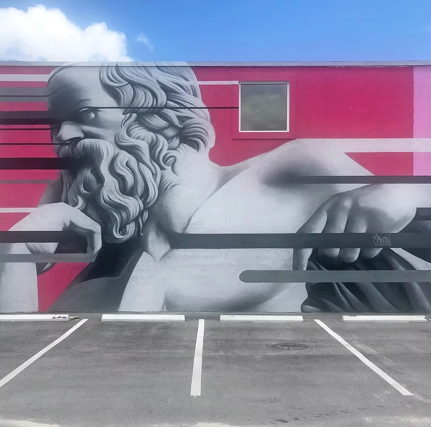 Crafting images with a depth and sensitivity that pushes the bounds of spray paint, Claudio occupies a space between graffiti writer and fine artist. Often times monochromatic, his works leave greater emphasis to rendering, smooth gradients, shading, and the relationship between foreground and background, positive and negative. Over the past two decades, Claudio has gained distinction as one of Miami’s most respected muralists for his unique, hyper-realistic style. His portraiture often finds inspiration in the Library of Congress’ early photographic archives, museums and 19th and early 20th century photo collections.