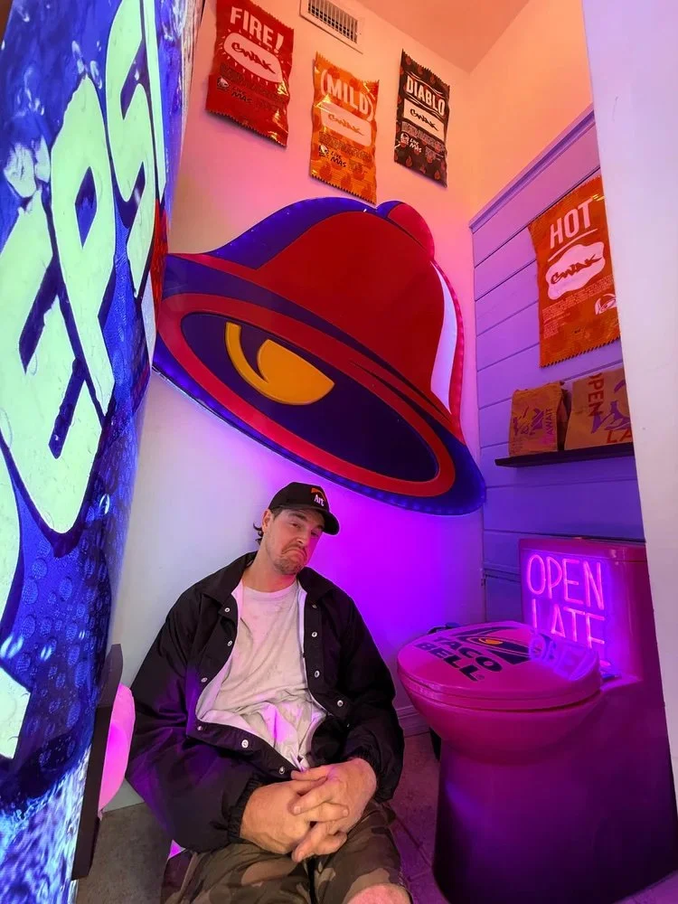 GWAK is a visionary multidisciplinary artist and designer from Sarasota, Florida, celebrated for his bold, nostalgia-driven work and 15 years of creative mastery. His practice blends sculpture, set design, fabrication, and immersive installation, resulting in playful, larger-than-life pieces that reinterpret iconic cultural imagery from the 80s and 90s.